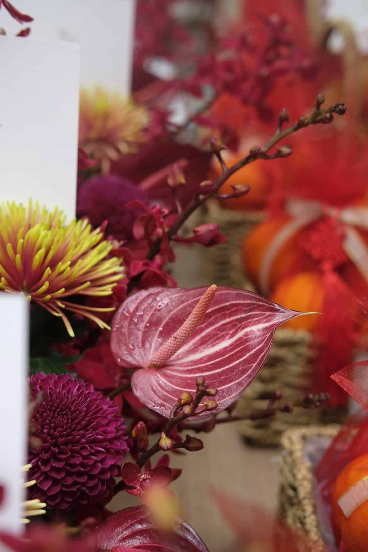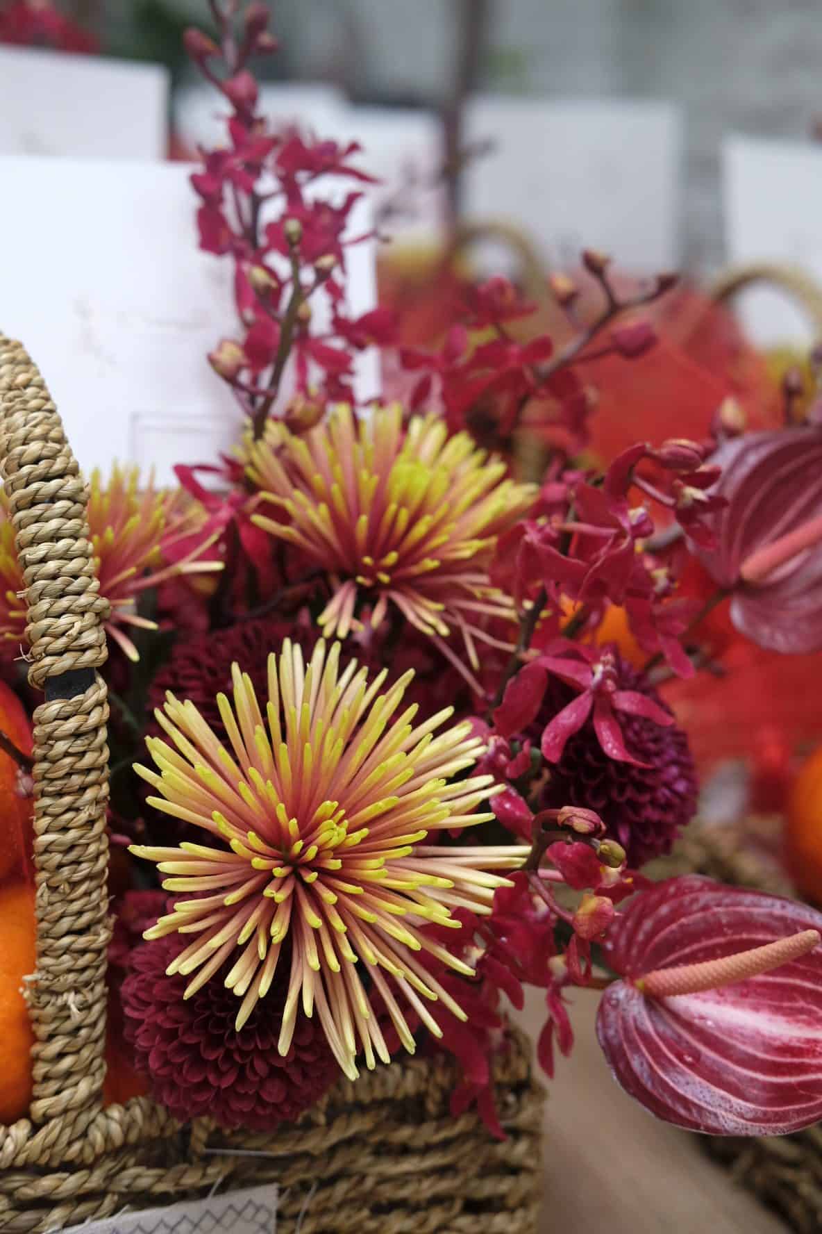 – Assorted Lunar New Year blooms in festive red and golden hues